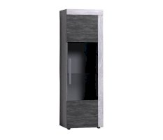 Если вы считаете, что хранить в гостиной посуду уже не модно, шкаф со стеклянной дверцей и стеклянными полками станет отличной витриной для дорогих и любимых фотографий и памятных вещиц. Стеклополки в обработке еврокромкой выдерживают до 10 кг каждая. Их можно декоративно подсветить с помощью светодиодной подсветки (в комплекте не поставляется, приобретается отдельно). Фасад перенавешивается на левую и правую сторону. Серебристая стильная ручка из массива дерева и серое тонирование стекло фасада вносят смелые дизайнерские штрихи в восприятии актуального декора "под бетон".