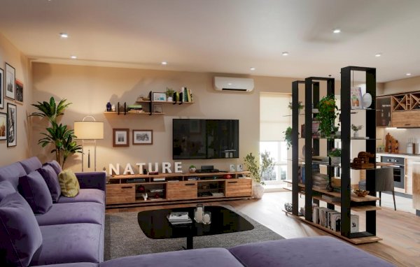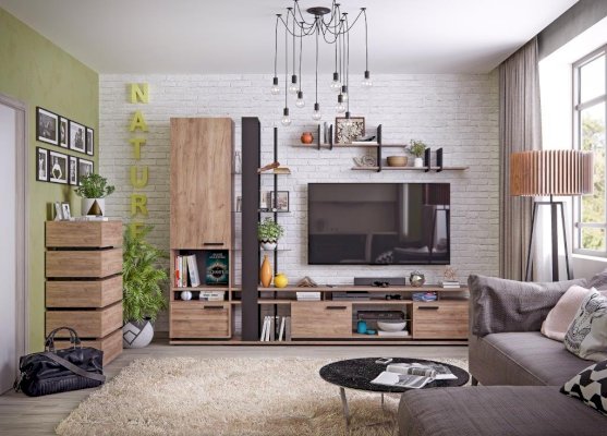 Стильная и аккуратная тумба гармонично впишется в интерьер гостиной в стиле Лофт. Визуально легкая конструкция не загромождает пространство и делает его более функциональным. Динамику Тумбе ТВ задает комбинация открытых поверхностей и глухих фасадов. Откидные фасады на кронштейнах. На ней без труда поместится телевизор с диагональю до 75''. Завершающий стильный элемент тумбы под телевизор - составной контрастный цоколь.