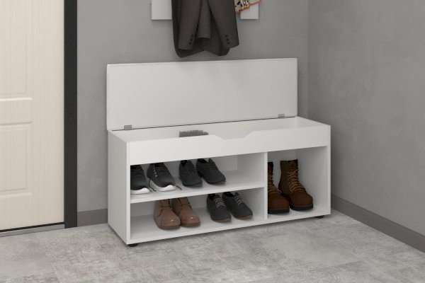Удобная и функциональная тумба для прихожей, помимо полочки для обуви имеет поднимающееся сиденье с пространством под мелкие предметы. Ваши обувные щетки и крема теперь не будут разбросаны по прихожей, а будут аккуратно находиться на своем месте.