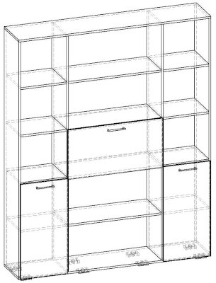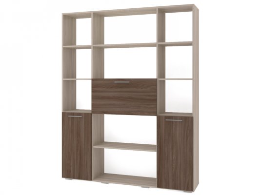 Применение задней стенки из ЛДСП (в ячейках с фасадами) позволяет использовать данный стеллаж для зонирования пространства (чтобы предотвратить опрокидывание, необходимо обеспечить крепление стеллажа к стене).