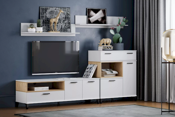 Навесная полка НМ 011.60-01 поможет разместить в гостиной или спальне книги и элементы декора. Модуль сделан в виде настенной панели с полкой.