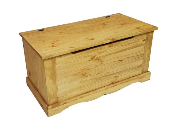 Вырез под крышкой - элемент безопасности для детей. Его можно поставить в спальне как ящик для белья или детских игрушек. Внутреннее пространство отшлифовано и тонировано. Выступающие части плавно закруглены.