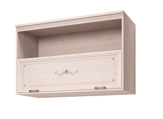 Настенный шкаф из коллекции «Афродита» идеально впишется в комплект гостиной данной серии и дополнит интерьер Вашей комнаты. Этот модуль придаст завершенный вид гостиной и станет вспомогательным элементом в грамотной организации хранения вещей. Благодаря двум секциям с открытым и глухим фасадом Вы сможете разместить в нем разноплановые вещи. Удобный подъемный механизм газлифт и ручки с обеих сторон обеспечат комфортное открывание и закрывание ящика.