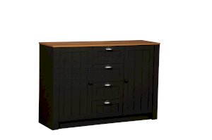 Эта модель – выбор тех, кто хочет в одном пространстве уместить многое. Четыре выдвижных ящика по центру, два вместительных отсека по бокам – все располагает к решению данной задачи. В каждом отсеке – по две полки из ЛДСП, каждая из которых выдерживает вес до 5 кг.