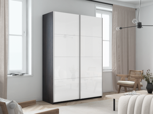 Шкаф-купе 2-х дверный Прайм Белое стекло/Белое стекло 1400х2300х570 мм Венге