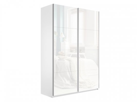 Шкаф-купе 2-х дверный Прайм Белое стекло/Белое стекло 1400х2300х570 мм Белый снег