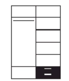 Шкаф можно дополнить встраиваемым модулем с выдвижными ящиками. Модуль устанавливается на любом уровне и в любой секции, но рекомендуемое место размещение - нижняя секция отделения с полками.