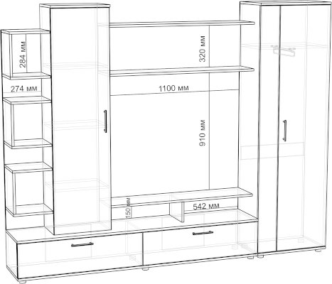 Ниша под ТВ: 1100 х 910 мм