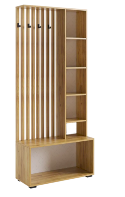 Стильные, трендовые рейки МДФ, акцентные крючки, зеркало, в котором можно себя увидеть в полный рост, полки для мелочей и головных уборов, а так же внузу большой шкаф для обуви, самые актуальные и ценные моменты для прихожей.