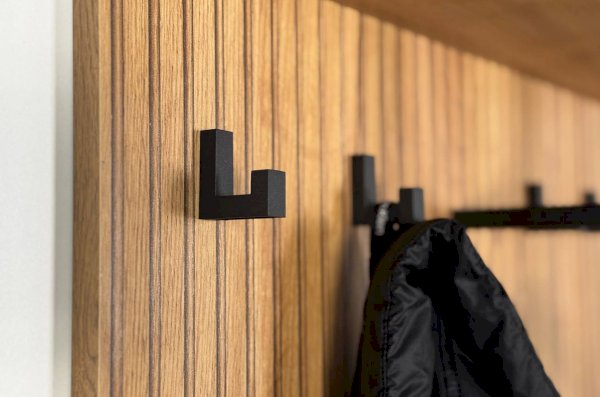 Принт, имитирующий вертикальную фрезеровку придает вешалке уникальный и современный вид, добавляя текстуру и глубину. Материал вешалки – ЛДСП, что обеспечивает прочность и долговечность, а также легкость в уходе.