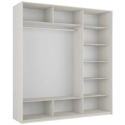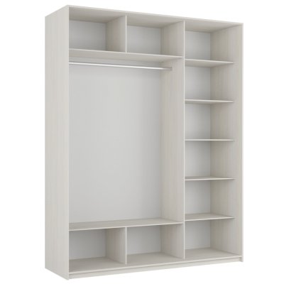 Серия «Прайм» отличается доступностью и функциональностью Навесные двери и лаконичная отделка фасадов создают прогрессивный дизайн. Подойдет тем, кто любит компактную и изящную мебель. Алюминиевые ручки и верхний ходовой профиль обеспечивают легкость и прочность конструкции. Многолетняя безупречная работа благодаря высококачественной немецкой фурнитуре Hettich. Прочная ПВХ-кромка толщиной до 1 мм защищает края от сколов и повреждений. Плавный ход дверей обеспечивает надежная система Hettich Top Line M. Дополнительно можно установить доводчики. Снаружи нет заглушек и винтов благодаря стяжечной системе крепления полок на флипперах, а корпус усилен эксцентриковыми стяжками. Навесные двери скрывают раздвижной механизм от глаз. Они надежно удерживаются в направляющих и не соскакивают. Каждая дверь поделена на 4 секции Секции расставляются в произвольном порядке, создавая новый дизайн фасада.