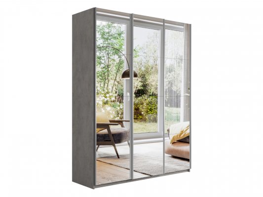 Шкаф-купе 3-х дверный Прайм Зеркало/Зеркало/Зеркало 1800х2300х570 мм Бетон