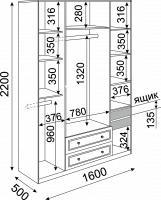 Наполнение шкафа выдвижные ящики / зеркало / штанга