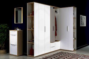 Внимание! У шкафа открывается только одна створка. Шкаф по размерам является полноценным двухстворчатым шкафом. Однако благодаря своей конструкции, он идеально подойдет для маленьких прихожих, поскольку ему нужно мало места для открывания.
