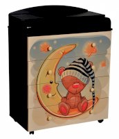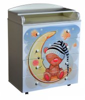 Пеленальный комод 800/4 Lilu 7 отличается привлекательным дизайном с использованием тематических детских принтов. В конструкции изделия предусмотрены 4 маленьких передвижных колеса, несколько вместительных ящичков на шариковых направляющих и откидывающаяся пеленальная столешница. Детский пеленальный комод, декорированный красочным рисунком, вмещает в себя постельные принадлежности, средства гигиены, распашонки, подгузники, игрушки, ползунки и другие личные вещи ребенка. Гладкая столешница идеально подходит для пеленания ребенка, а колесики позволяют быстро перемещать комод.